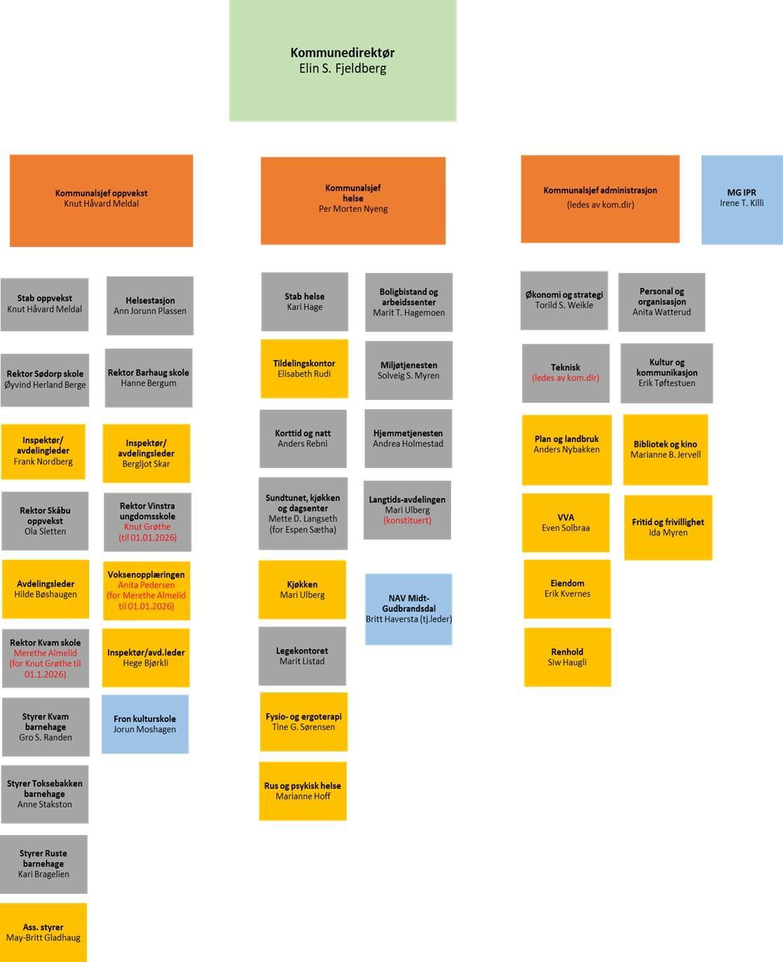 OrganisasjonskartUnder ser du organisasjonskartet for Nord-Fron kommune pr. 01.09.2025. Publisert 22.10.2025 11.04 Sist endra 22.10.2025 11.04